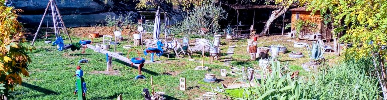 Il parchetto è perfetto. Ci sono scivolini, altalene, casette delle bambole. Ogni anno c’è qualcosa in più. Il totem degli indiani, un tepee, il tirassegno.